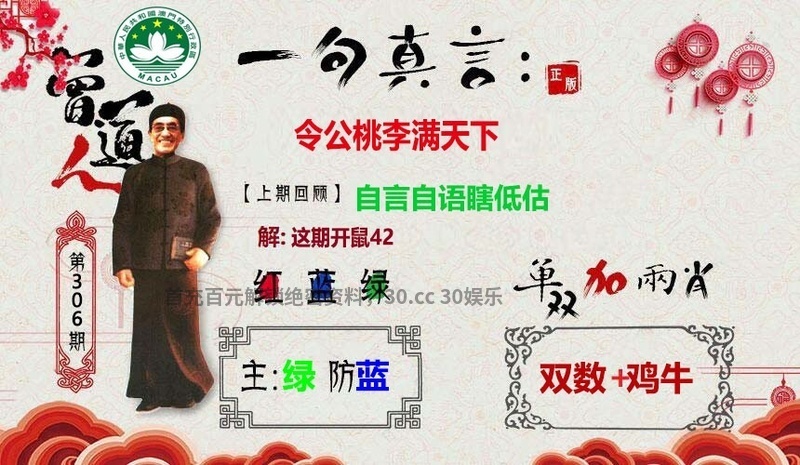 | 【超级王牌解一句真言】306期:令公桃李满天下 【王牌看好生肖】鸡兔牛虎蛇猪 【王牌看好波色】绿波+蓝波 【王牌单双两肖】双数+鸡牛 |