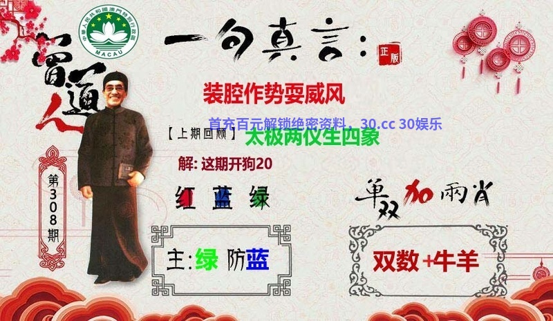 | 【超级王牌解一句真言】308期:装腔作势耍威风 【王牌看好波色】绿波+蓝波 |